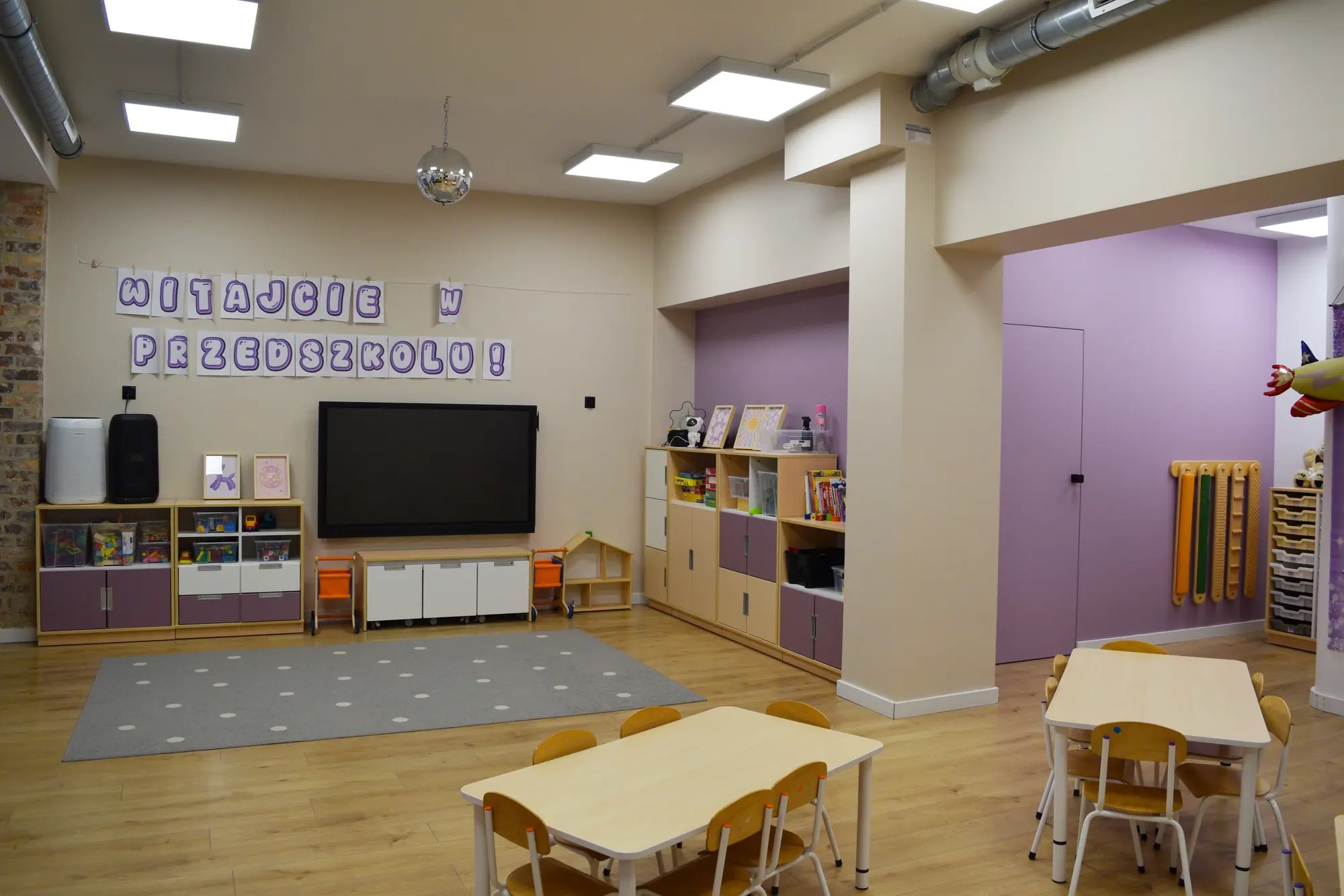 przestronną, nowoczesną i wyposażoną sale dydaktyczną, dostosowaną do wieku dzieci